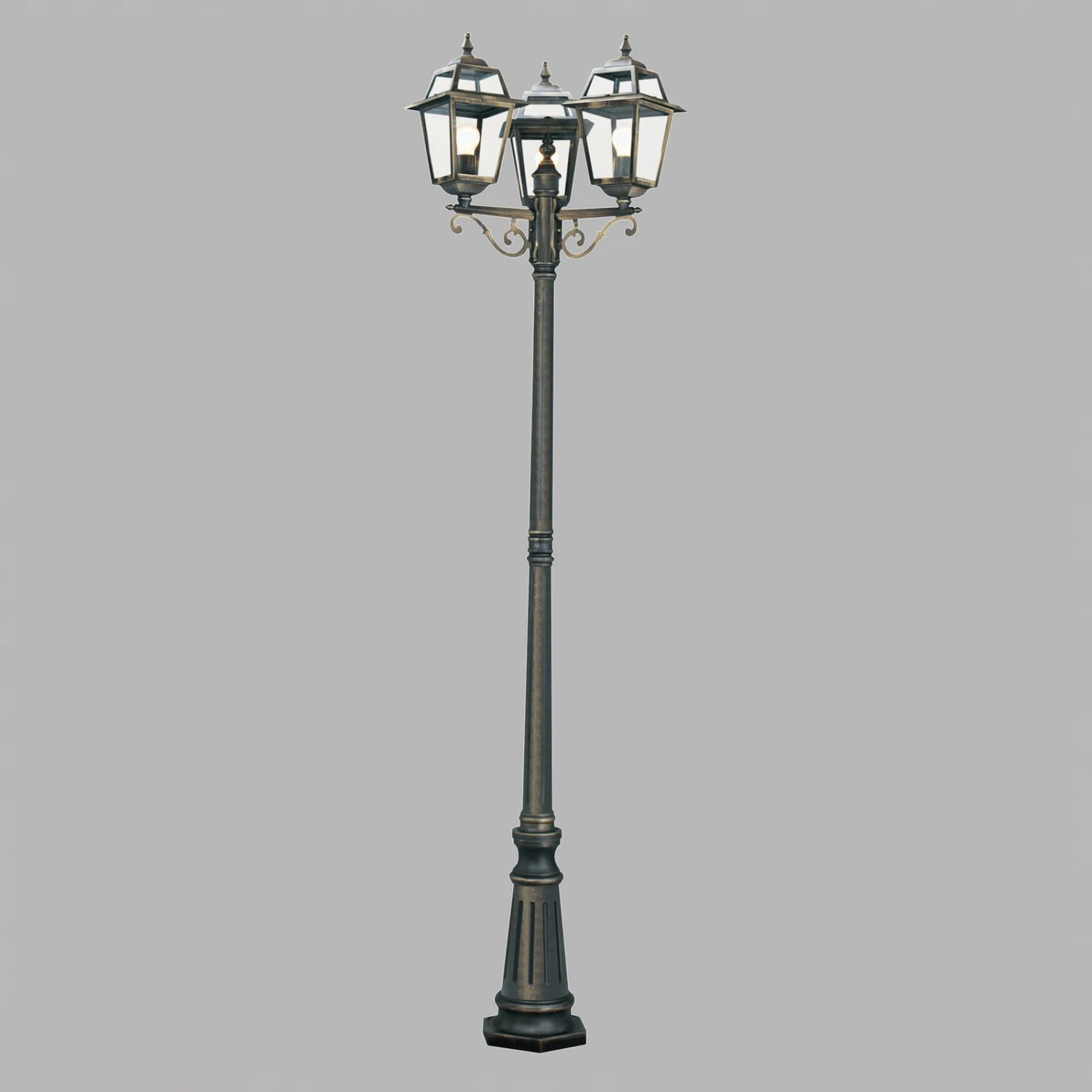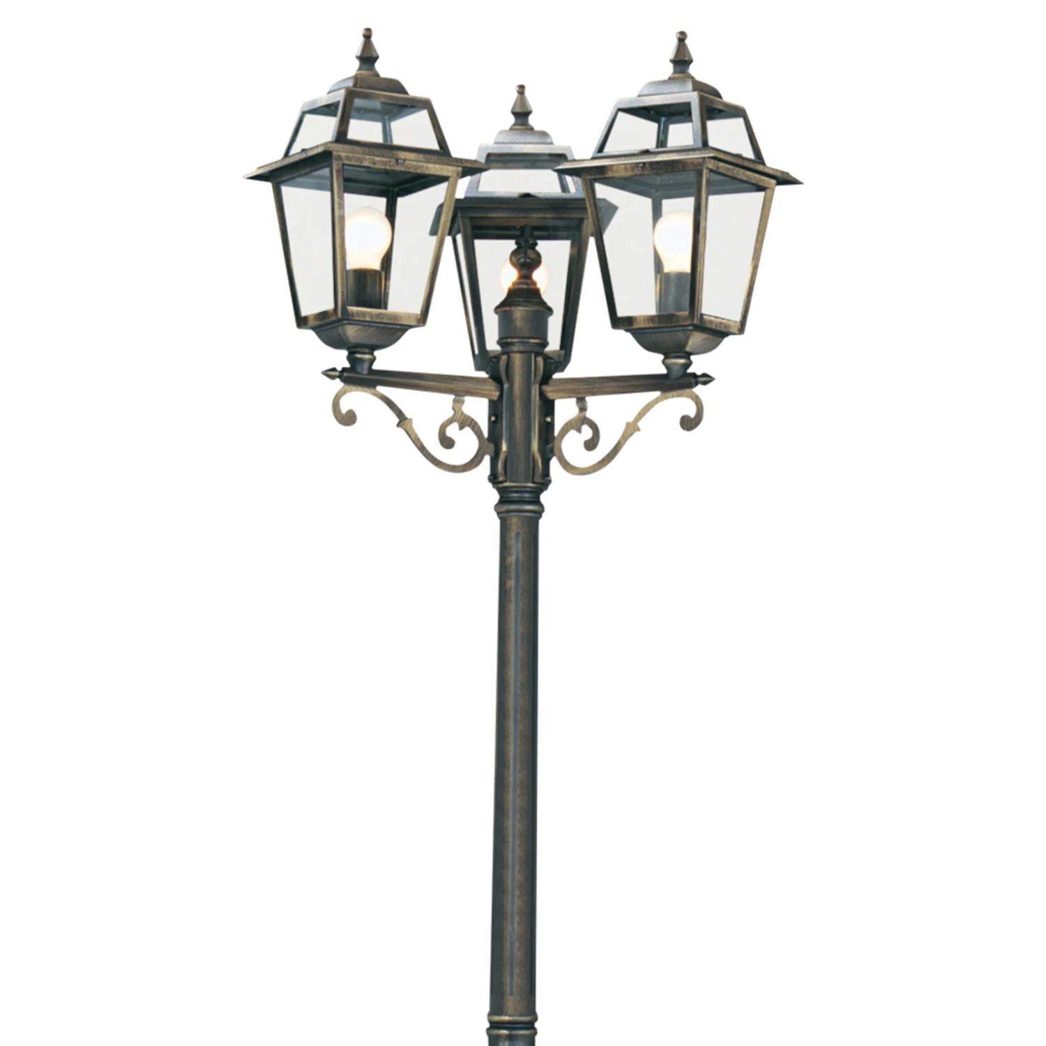 Mit dieser dreiflammigen, antik designten Mastleuchte lassen sich alle Grundstückswege, beispielsweise der Zugang zum Haus oder die Garageneinfahrt, adäquat und sicher ausleuchten. Die in die drei Laternenleuchten einzusetzenden Lampen verströmen ihr Licht ungehindert durch das klare Glas. Mit Spritzwasserschutz (IP44) ausgestattet, hält die Mastleuchte New Orleans auch widrigen Witterungsumständen stand.