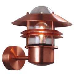Die Außenwandleuchte Blokhus wurde aus Kupfer kreativ gestaltet und eignet sich zur Beleuchtung von Eingangsbereichen, Terrassen etc. vieler Gebäude. Eine Qualitätsleuchte ausgerüstet mit Schutzart IP44.