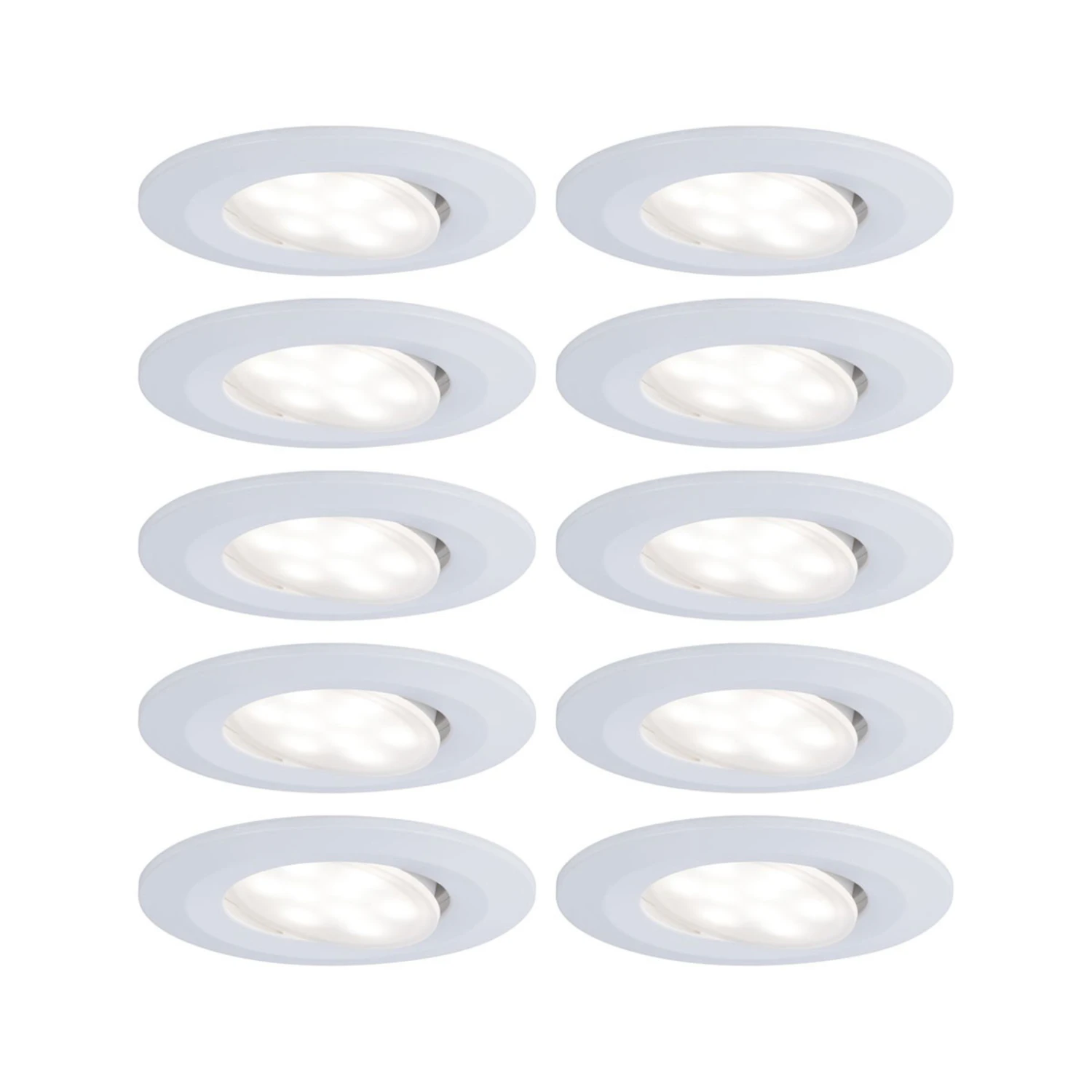 Paulmann bietet mit Calla einen Meister der Vielseitigkeit an. Vom Außen- und Feuchtbereich, über Verkaufs- und Büroräume bis hin zum Bad und Flur im privaten Wohnbereich dient die LED-Einbauleuchte als effektive und gleichzeitig optisch unauffällige Lichtquelle an der Decke. Mit dem praktischen 10er-Pack lassen sich auch größere Räume oder Bereiche ausstatten.