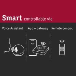 Um die Lichtfarbe sowie die Helligkeit nach Belieben einstellen und die Bedienung per Smartphone vornehmen zu können, ist eine separate ZigBee-Bridge nötig. Paulmann bietet hierfür das Gateway smik mit kostenloser App für iOS und Android, das separat über das Zubehör erworben werden kann. Die smik App ist mit Amazon Alexa kompatibel, so dass auch eine Sprachsteuerung ermöglicht wird. Die Einbindung in ein ZigBee-fähiges Smart-Home-System anderer Hersteller ist ebenfalls möglich. Möchte man komplett auf eine Bridge verzichten, greift man sprichwörtlich zu so genannten ZigBee-Handsendern. Im Zubehör sind entsprechende Angebote von Paulmann, wie die Fernbedienung Gent, separat erhältlich.