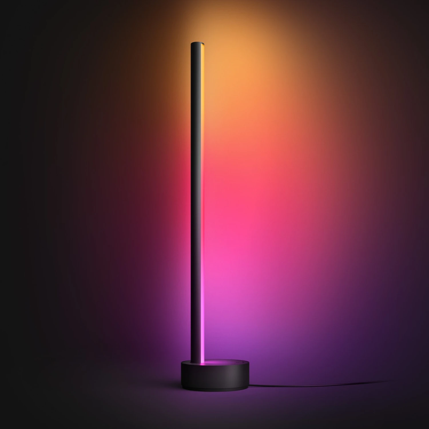 Schlank und minimalistisch gestaltet, liegt der Fokus der LED-Tischleuchte Philips Hue Signe mit fortschrittlicher Gradient Technologie ganz auf der Lichtwirkung. Signe ermöglicht vor allem eine gleichmäßige indirekte Lichtverteilung über die Wand oder auch direkt in den Raum. Die Leuchte aus der Philips Hue Gradient Ambiance Serie sorgt für eine besondere Atmosphäre in jedem Wohnraum. Alle Gradient-Produkte können statische und dynamische Farbverläufe erzeugen. Dabei werden über die Höhe der Tischleuchte mehrere Farben gleichzeitig generiert, die sich individuell einstellen lassen. So kann die LED-Tischleuchte Signe beispielsweise unten in pink, in der Mitte eher rot und im oberen Part in einem gelben Licht leuchten und so eine beeindruckende Lichtatmosphäre erschaffen.