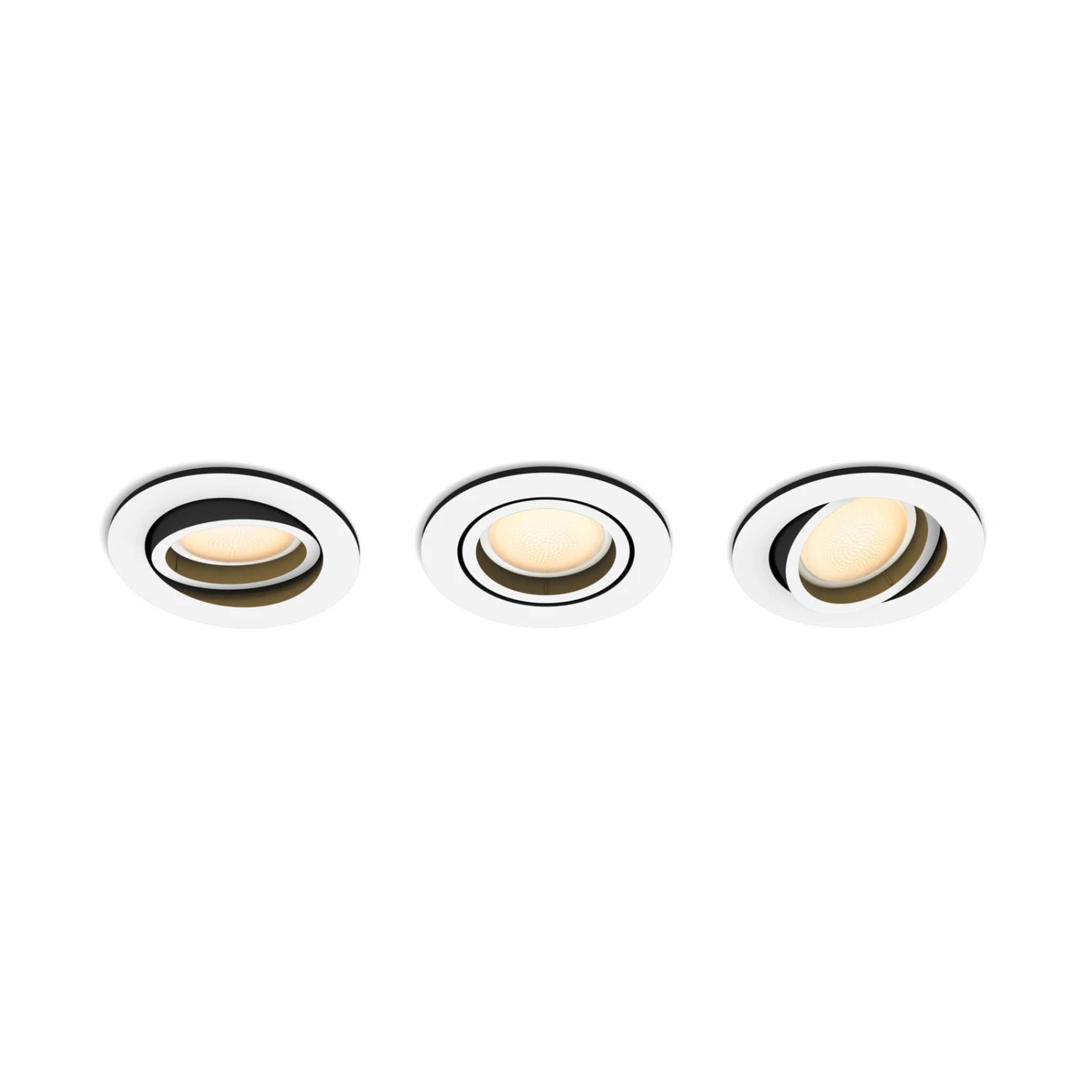 Der moderne, runde LED-Einbauspot Milliskin aus der Philips Hue Produktfamilie ist mit einem smart steuerbaren Leuchtmittel bestückt. Dieses findet in einem rundum schwenkbaren Leuchtenkopf Platz und bietet eine variable Helligkeit und Farbtemperatur.