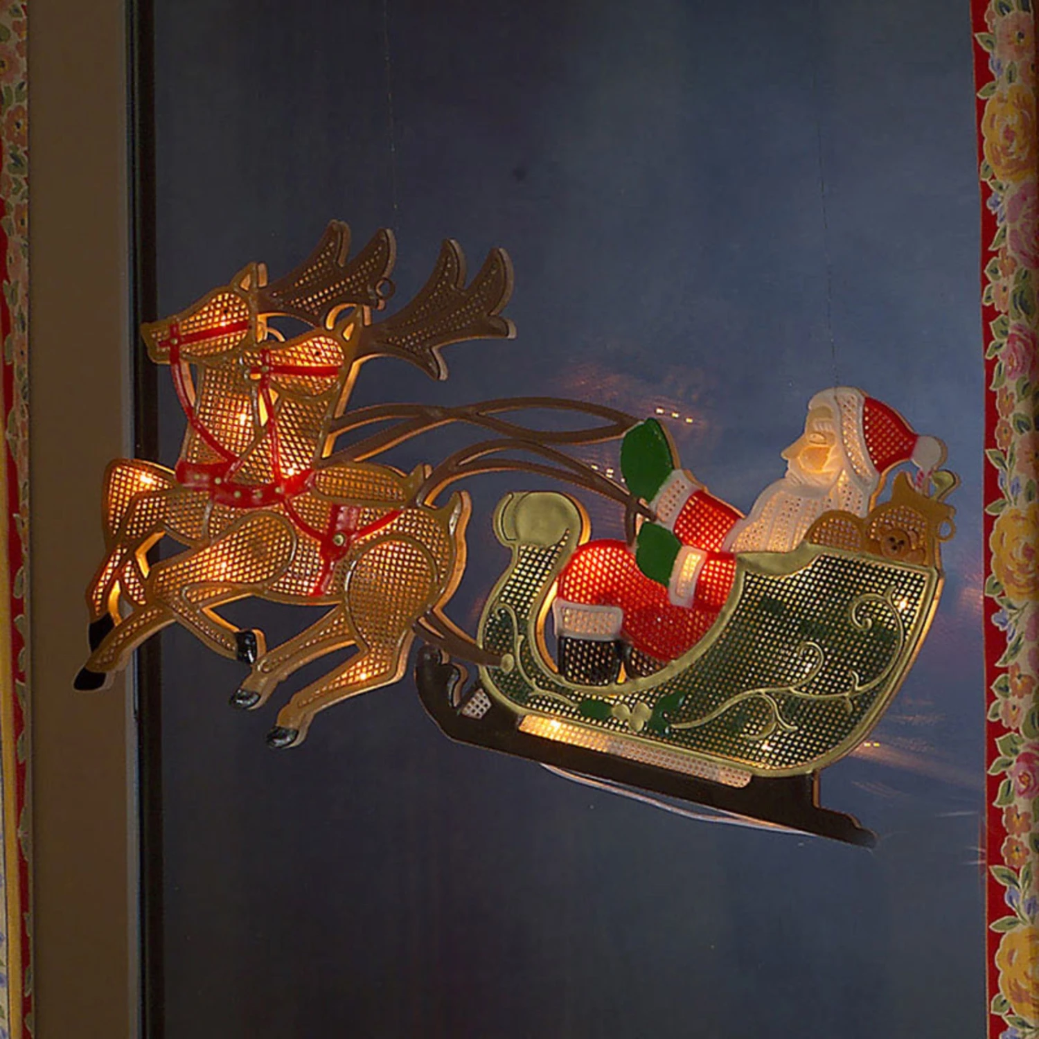 Die Weihnachtszeit wäre ohne eine entsprechende Fensterdekoration sicher nur halb so schön. Wer freut sich nicht, wenn so ein schönes Fensterbild wie das des Rentiers mit Weihnachtsmann und Schlitten sein Fenster ziert. Warmweiß strahlende LEDs setzen das LED-Fensterbild wunderbar in Szene.