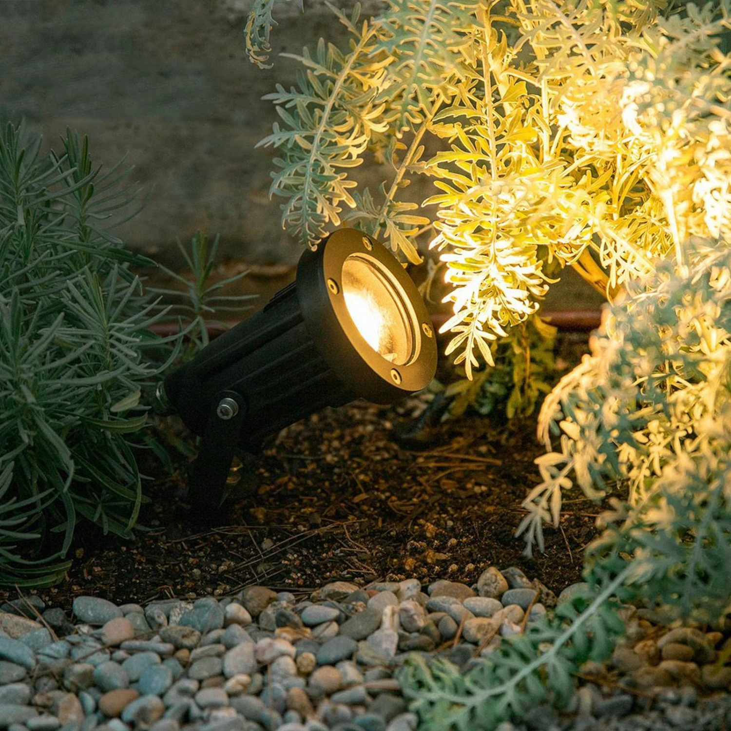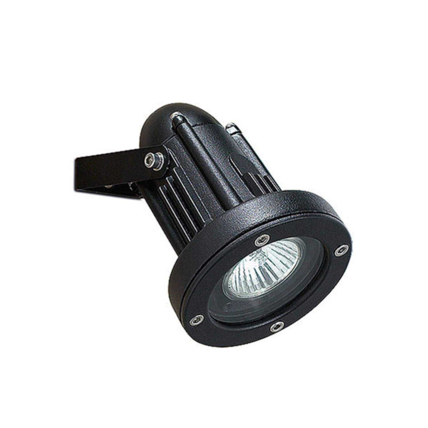Der aus hochwertigem Aluminiumguss gefertigte und mit einer klaren Glasscheibe ausgestattete Außenstrahler Helio eignet sich hervorragend zur Inszenierung bestimmter Außenbereiche oder Objekte, denn er ist vertikal um 90° schwenkbar. So lässt sich das Licht, das im Inneren durch ein GU10-Leuchtmittel (siehe Zubehör) erzeugt wird, bedarfsgerecht lenken.