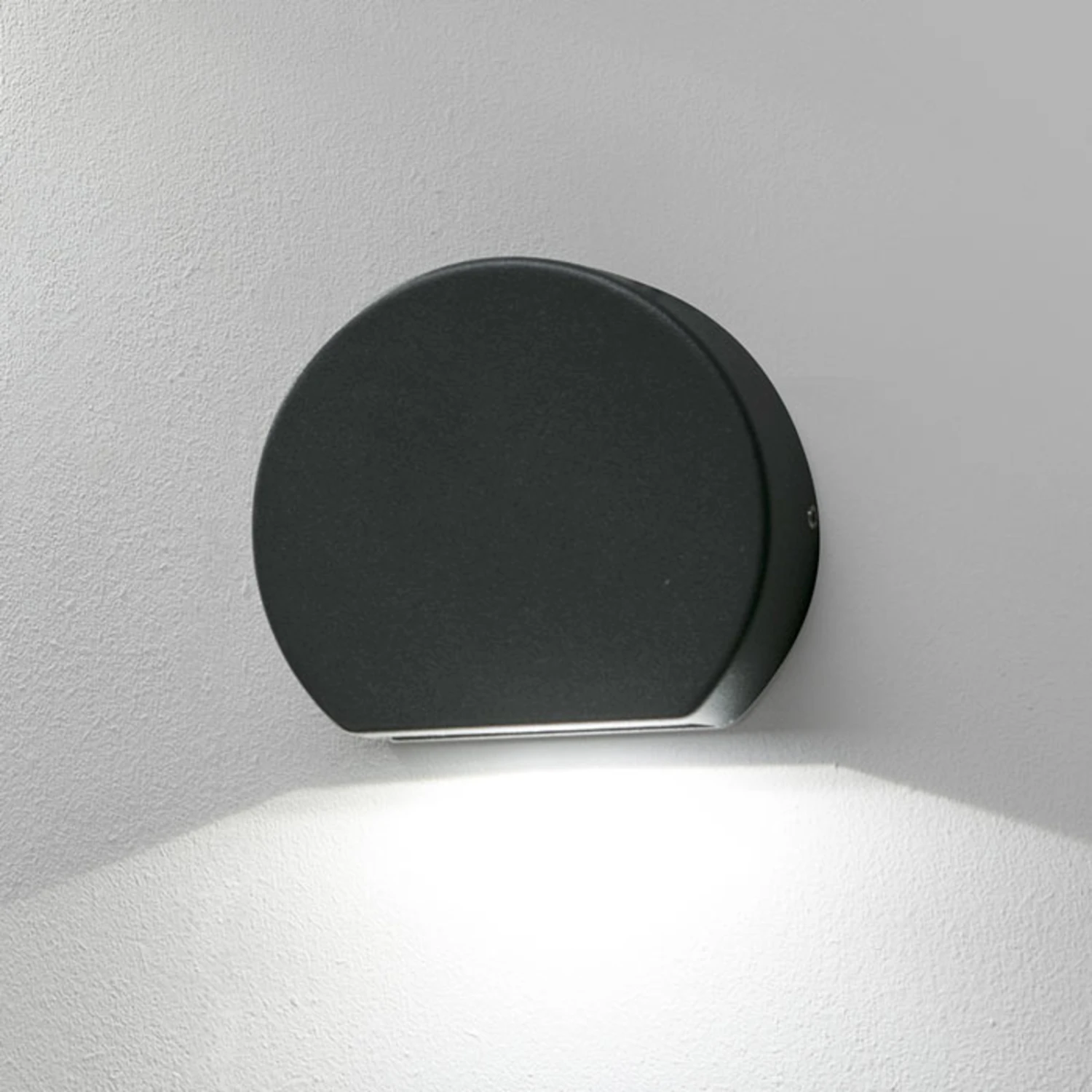 Auf Wunsch lässt sich die Wandlampe mit dem Leuchtelement oben oder unten anbringen. Dadurch erweitert sich das Spektrum an Einsatzmöglichkeiten zusätzlich. Unter anderem kann die Außenwandleuchte Pill zum gezielten Ausleuchten der Hausnummer, als interessanter Lichtakzent oder zum Markieren von bestimmten Bereichen verwendet werden. So macht sich dieser zurückhaltende Lichtspot bei der sicheren Beleuchtung von Stufen im Eingangsbereich oder Treppen im Garten besonders gut.