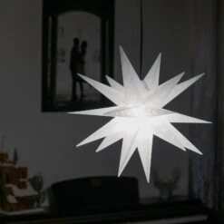 Der 18-zackige Deko-Stern wirkt einerseits durch seine Form und Größe und andererseits durch das schöne Stanzmuster im Schneeflocken-Design als ganz besonderer Blickfang rund ums Haus. Er schmückt Fenster von außen ebenso wie den Eingangsbereich oder den Balkon bzw. die Terrasse.