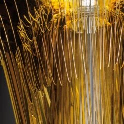 Die eindrucksvolle Hängeleuchte Aria überzeugt mit ihrer radialen Struktur aus 50 verschiedenen „Armen“, die ein dreidimensionales Volumen erschaffen. Die Leuchte aus dem Hause Slamp wurde aus eigens hergestellten Materialien angefertigt. Die hochwertigen Technopolymere sind besonders widerstandsfähig gegen UV-Strahlung und Wärme und wurden antistatisch behandelt, um den Staub abzuweisen. Das verarbeitete Lentiflex® gewährleistet eine warme und gleichmäßige Lichtabgabe und durch das Cristalflex® wird der Hängeleuchte aus einem leichten und zugleich bruchfesten Material die Anmut und Kostbarkeit von Glas verliehen. Mit diesem Designobjekt lassen sich sowohl modern als auch zeitlos eingerichtete Räume effektvoll gestalten.