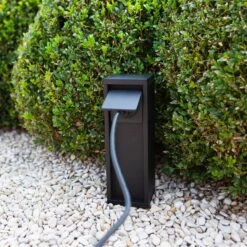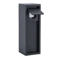 Die zeitgemäße Steckdosensäule in Schwarz matt ist mit einem robusten Aluminiumgehäuse ausgestattet und dient als Strom-Festinstallation im Garten oder auf der Terrasse. Gegen Witterungseinflüsse schützt der Klappdeckel, der bei Nichtverwendung die Stromquelle verschließt.