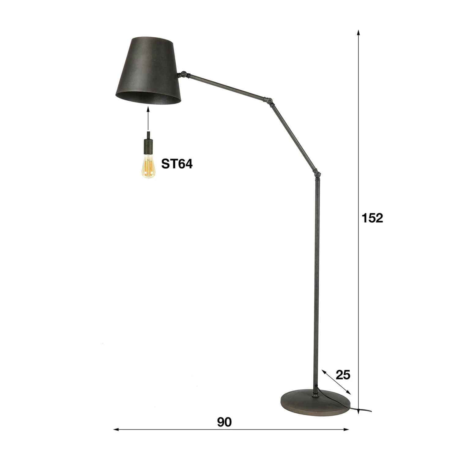 Einerseits modern schlicht und funktional, andererseits in rustikaler Kohle-Optik – so präsentiert sich die aus Metall gefertigte Stehleuchte Arretona. Gleich drei Flügelschrauben im oberen Abschnitt des Ständers erlauben eine individuelle Einstellung der Ausladung und Höhe der Leuchte sowie der Orientierung des Schirms. Dieser ist ein nach oben zulaufender Zylinder, der über seine vertikalen Öffnungen sowohl direkte als auch indirekte Beleuchtung ermöglicht. Je nach Wahl der E27-Lampe tritt eher das dekorative oder das funktionale Potenzial der Stehleuchte Arretona in den Vordergrund. Der Schalter befindet sich auf dem Kabel.