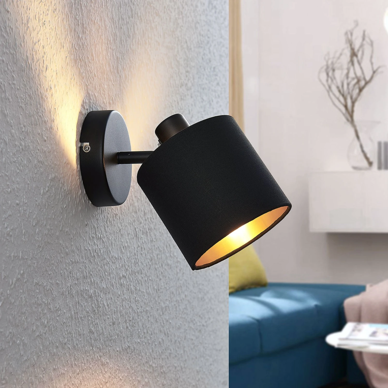 Für einen gezielt gesetzten Lichtschein: Die Stoff-Wandleuchte Vasilia setzt einen strahlenden Akzent im Flur oder Wohnbereich. Auch im Schlafzimmer lässt sich die Lampe mit geradlinigem Design nutzen, um Licht ins Dunkel zu bringen.