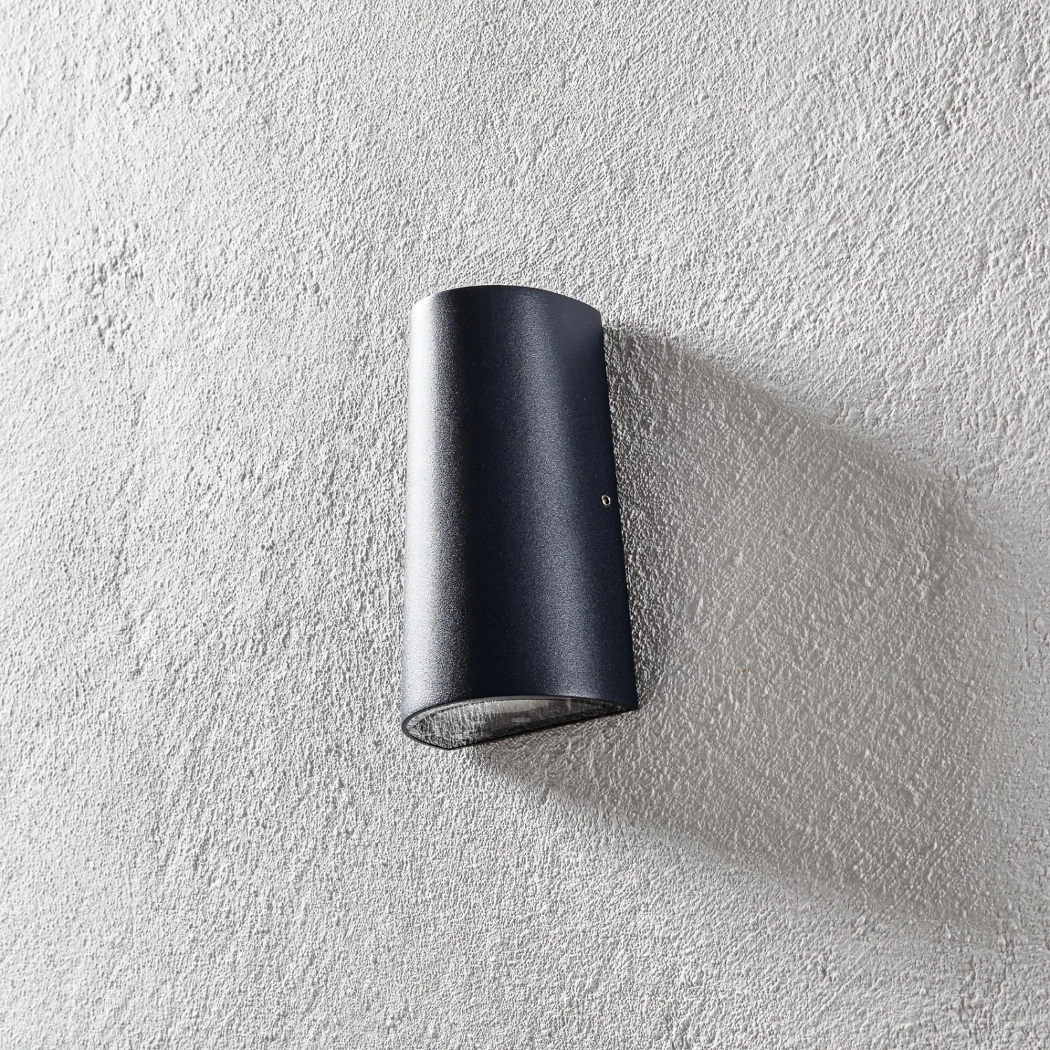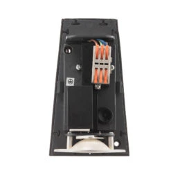 Die halbrund und kegelförmige LED-Wandleuchte ist aus schwarzem Aluminiumdruckguss und für den Außenbereich designt. Das verbaute LED-Modul gibt den warmweißen Lichtstrom nach unten ab und setzt damit Eingangsbereiche in eine wohlige Atmospähre. Die Leuchte lässt sich zudem schnell und einfach montieren und ist für Anschlussklemmen mit Drähten bis 2,5 mm² geeignet.