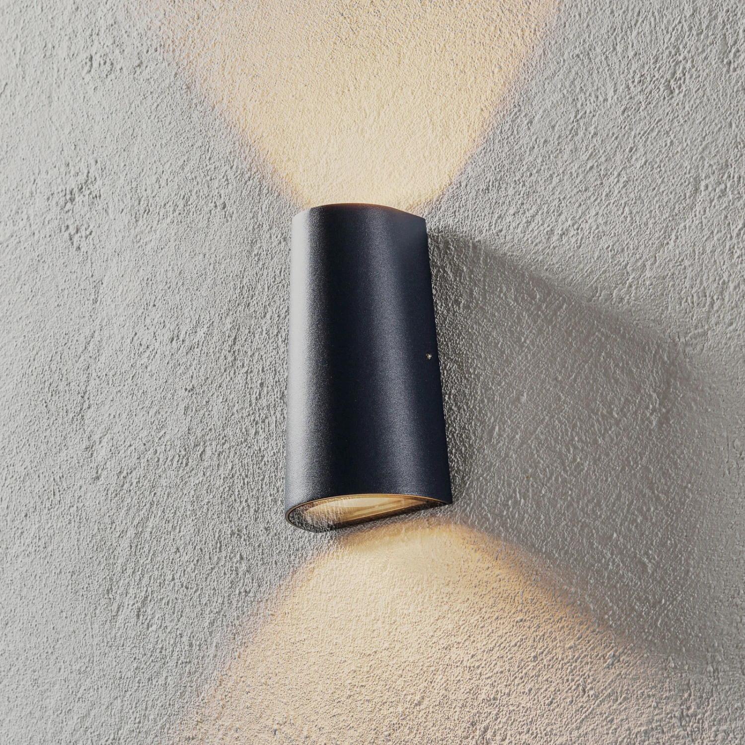 Die elegante LED-Wandleuchte liegt absolut im Trend, denn der Lichtaustritt erfolgt sowohl nach oben als auch nach unten. Somit sorgt sie nicht nur für die nötige warmweiße Beleuchtung, sondern erzeugt auch ein angenehmes Lichtspiel an der Hauswand, womit sie zum Blickfang des Eingangsbereichs wird.