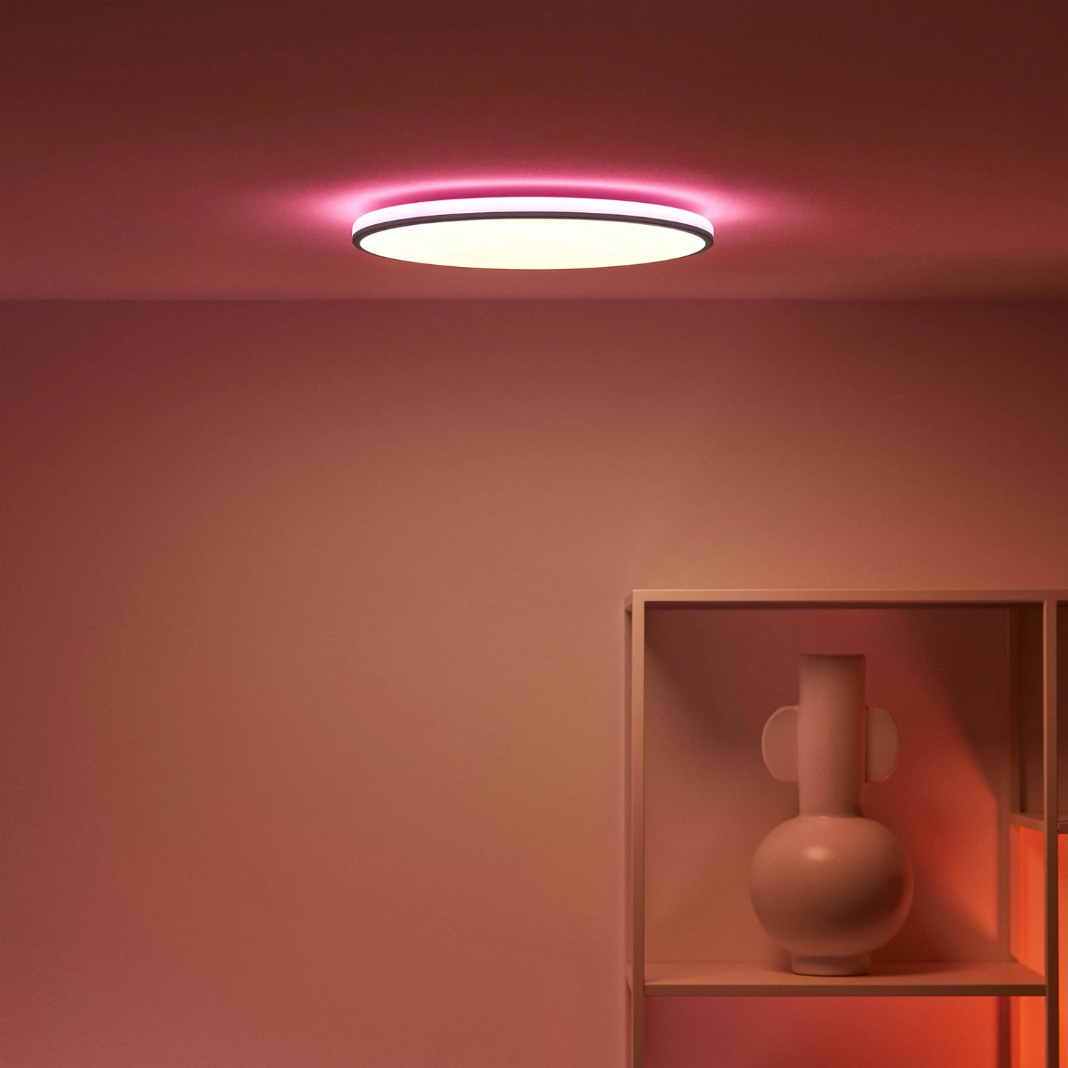 Die smarte WiZ-LED-Deckenleuchte Rune ist mit der innovativen Dual-Zone ausgestattet und bietet daher neben dem Hauptlicht auch eine beleuchtete Seitenzone, wodurch faszinierende Ambiente-Szenen geschaffen werden können. Über die kostenfreie WiZ-App lassen sich mit dem Smartphone oder Tablet nicht nur unterschiedliche Helligkeiten oder Lichttemperaturen einstellen, sondern auch dynamische Lichtmodi auswählen, die dem Tagesablauf entsprechen und damit die eigenen vier Wände einzigartig verschönern.